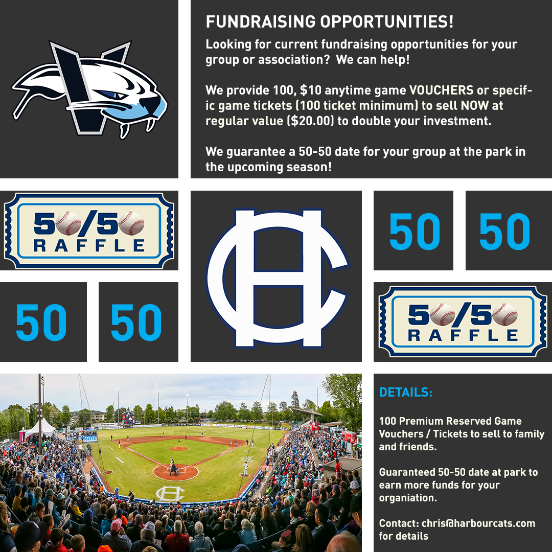 If your non-profit group or organization or sports team is looking for fundraising opportunities, the Victoria HarbourCats and the Victoria HarbourCats Foundation are pleased to offer 50-50 and game ticket selling opportunities throughout the season.