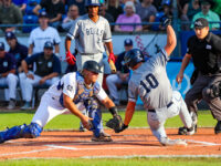 August 09, 2022 - 10:39pmAbove Photo: Tyler Pettit (left) tags out Malcom Moore (#10) attempting to head home in the top of the first (Photo: Christian J Stewart) Victoria, BC ~ The Bellingham Bells […]