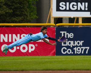 Left fielder Manny Ramirez Jr. dives in an attempt to make the catch (Photo: @JustinPMorash)