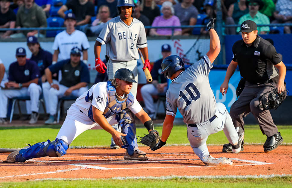 Victoria, BC ~ The Bellingham Bells used a three-run top of the sixth inning to break a 2-2 tie and defeat the Victoria HarbourCats by an eventual score of 8-2 in West Coast League playoff action Tuesday night at Wilson’s Group Stadium at Royal Athletic Park in Victoria.