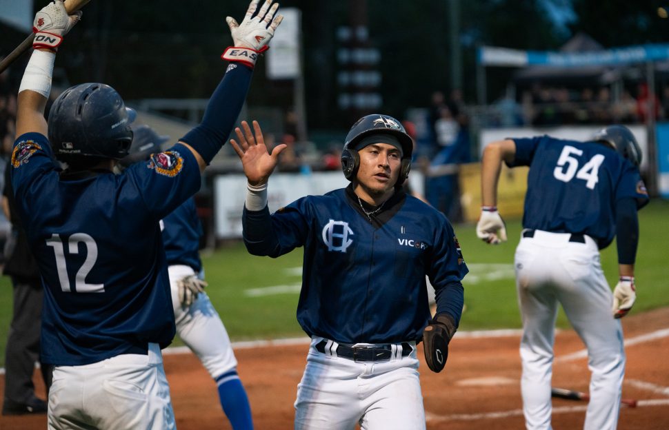 In the eighth inning, Kamana Hakanu (University of Hawaii) made his HarbourCats debut pinch-hitting for Vrlak and hit the third pitch he saw over the Wilson’s Group Stadium sign in left field giving Victoria an 11-6 lead.