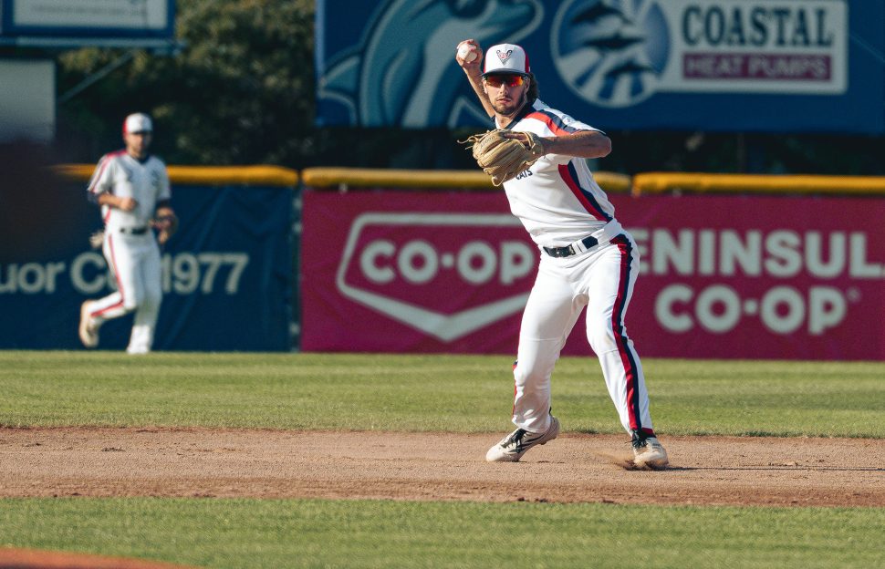 Robert Sanford (Paris JC) made his fourth appearance and third start of the season for the Cats and started brightly with a one-two-three first inning. However, Nanaimo struck first in the second inning when Talan Zenk hit into an RBI fielder’s choice after a pair of singles put runners on the corners. Zenk then stole second and came around on a Brady Morse single to give the visitors an early 2-0 lead.