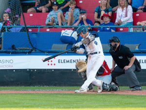 The NorthPaws made it 6-3 through a Jared Hall double in the top of the fifth inning, but the home team then exploded for eight runs in the bottom half. Jake Butler (George Mason) continued to torment Kamloops pitching, driving in a pair with a double to the gap to make it 8-3. Dominic Archila (Texas Tech) recorded an RBI for the second straight night with a single before Shepherd and Nahaku both drew bases-loaded walks to bring home two more runs. Garrett Brooks (St. Mary’s) plated a pair with a single up the middle before Butler recorded his second hit of the inning, this time an RBI single to cap off the huge inning.