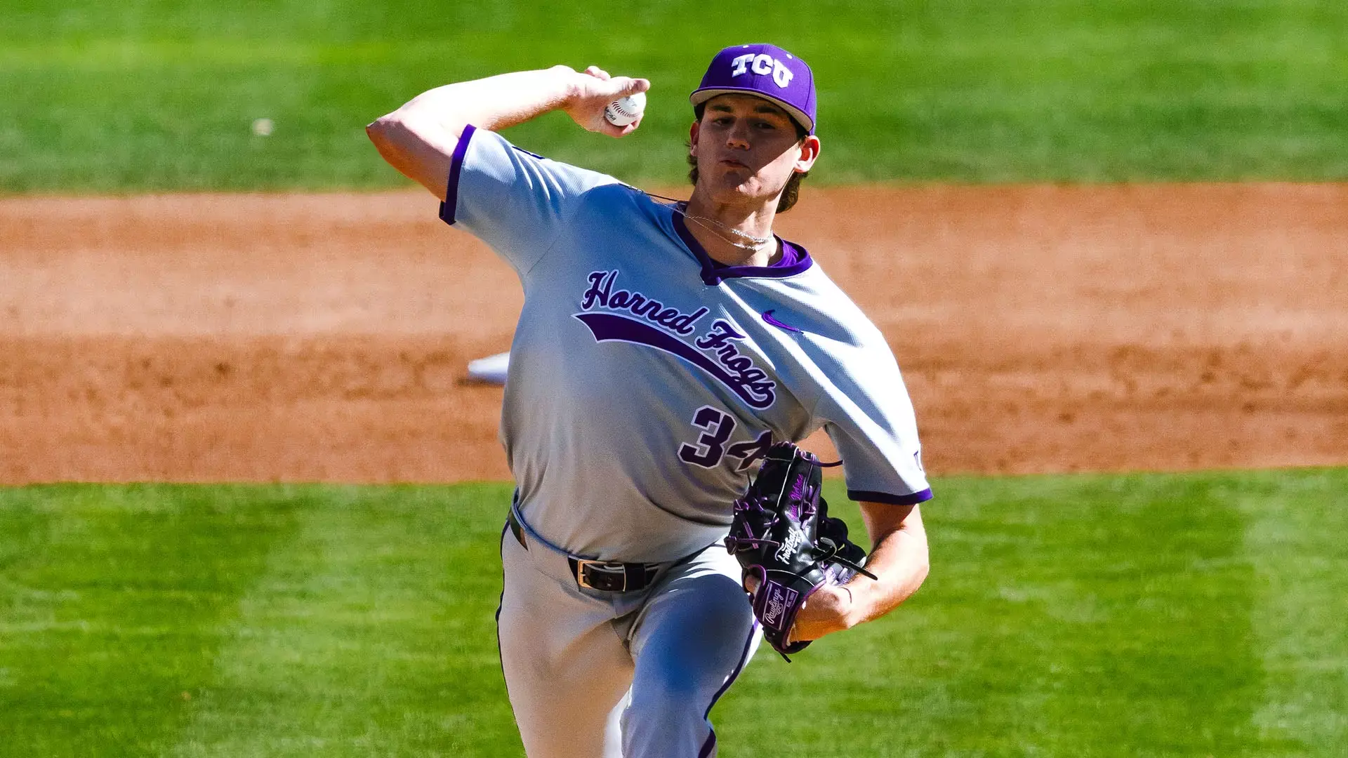 6-6 TCU pitcher Cade Nelson should be a dominating figure on the mound for the HarbourCats in 2026 (Photo courtesy TCU).