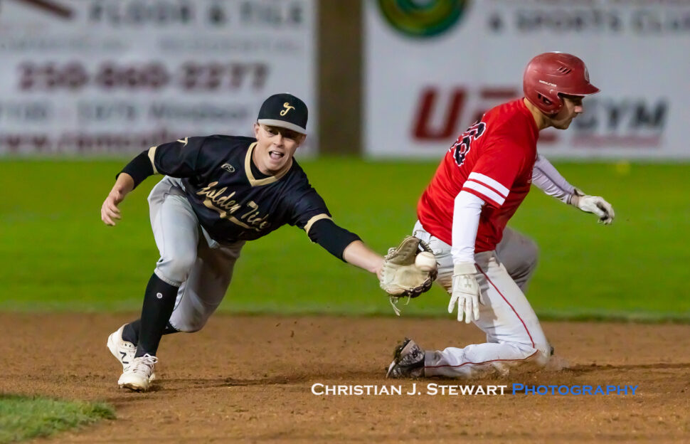 October 10, 2021, Kelowna, BC – The new kids on the Canadian College Baseball Conference (CCBC) block, the Victoria Golden Tide, battled hard, but eventually dropped an 11-5 decision to the Okanagan College (OC) Coyotes in semi-final action Sunday night at the CCBC Fall Championship Tournament at Elks Field in Kelowna.