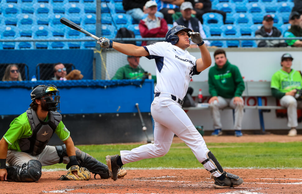 Victoria, BC ~ The Victoria HarbourCats used a two-double and three-hit night from John Ceccoli to win the first of a three game series with the NorthWest Honkers, convincingly 13-1 on Tuesday night at Wilson’s Group Stadium at Royal Athletic Park in exhibition baseball.