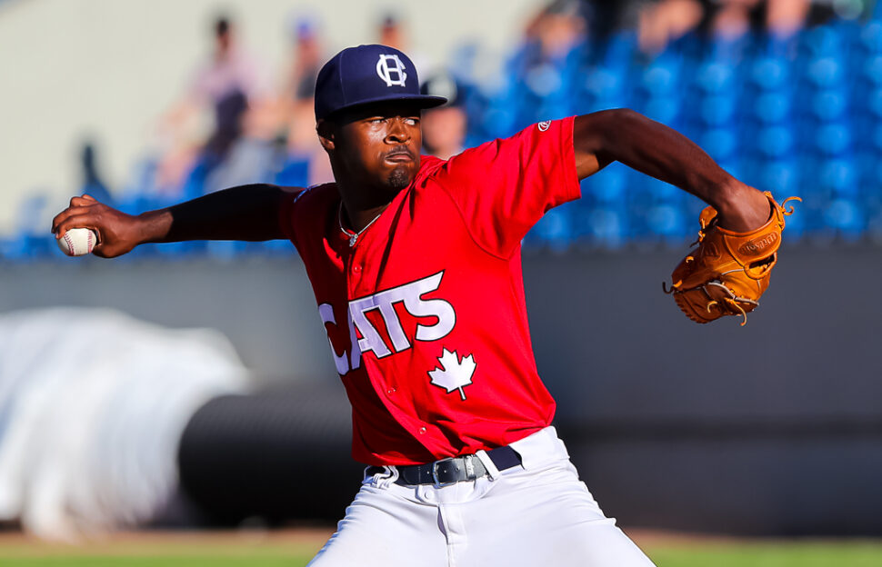 Above:  Andre Duplantier II, this week’s West Coast League Pitcher of the Week, here pitching in a previous home game, was stellar Sunday in the ‘Cats 5-1 win over Edmonton (Photo: Christian J. Stewart).