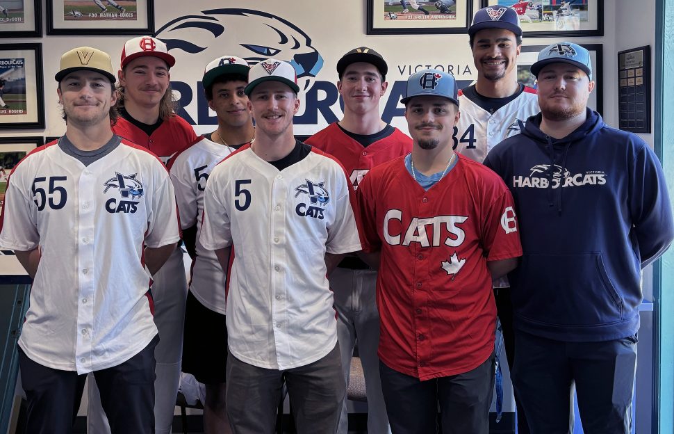 Welcome, the Victoria Collegiate Cats, fully embracing the HarbourCats logo and branding as of the fall season — caps, uniforms, workout gear, and mission statement to develop great baseball players and young men in a winning environment. Same program, even stronger connection to the parent club.