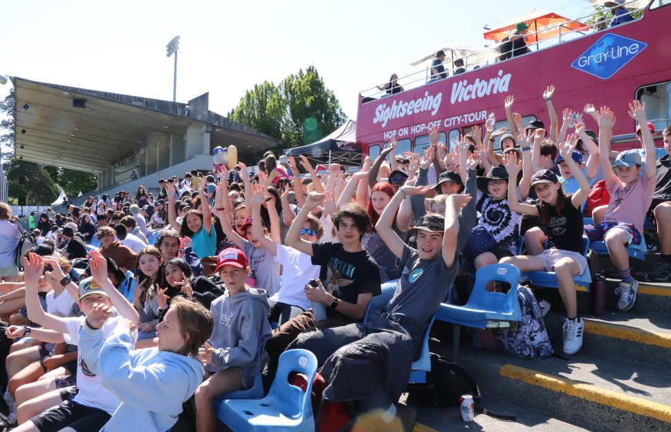 A packed house of just over 5,000 fans, including these students from Spencer Middle School, enjoyed the HarbourCats 11-1 win Saturday (Photo: Don Descoteau)