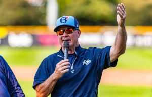 Del Manak threw out the first pitch on his celebration night (Photo: Christian J. Stewart)