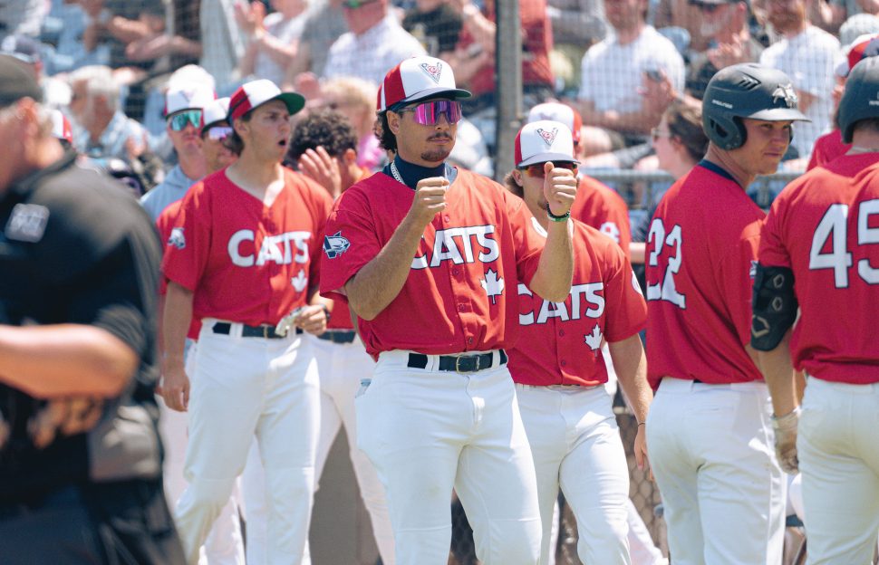 The bases were loaded early for Logan Shepherd (Mercer U), who drove in the first run of the game with an RBI single, his first of six RBIs on the night. That was followed by a Cayden Munster (Fresno State) two-run double and a Curtis McKay (Niagara) two-run single to make it 5-0. Back-to-back bases loaded walks surrendered to Garrett Brooks (St. Mary’s) and JC Allen (UC San Diego) brought up Shepherd with the bases loaded once again. The slugger went one better this time, hitting a double that scored all the baserunners, giving the Cats a 10-0 advantage.