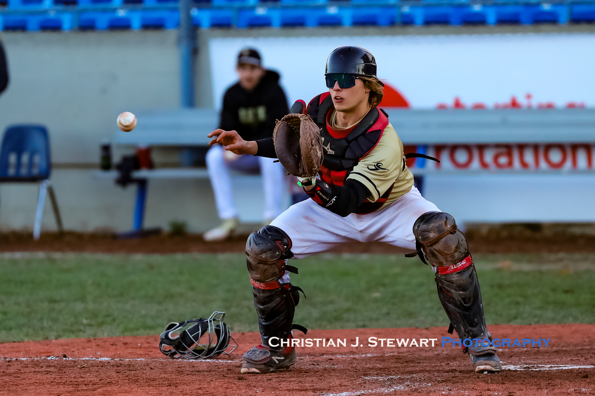 An RBI single by Parker Harris cut the lead to 14-12, bringing up Bret Czarkowski who lashed a double to the left field fence scoring one run, with a second, in Will Podmoroff, who had gone in to run for Harris, looking to be on his way to tying the score. However Team Black did a good job to get the ball in quickly and Podmoroff was held at the last minute, leaving the tying and potential winning runs in scoring position and third and second base respectively.