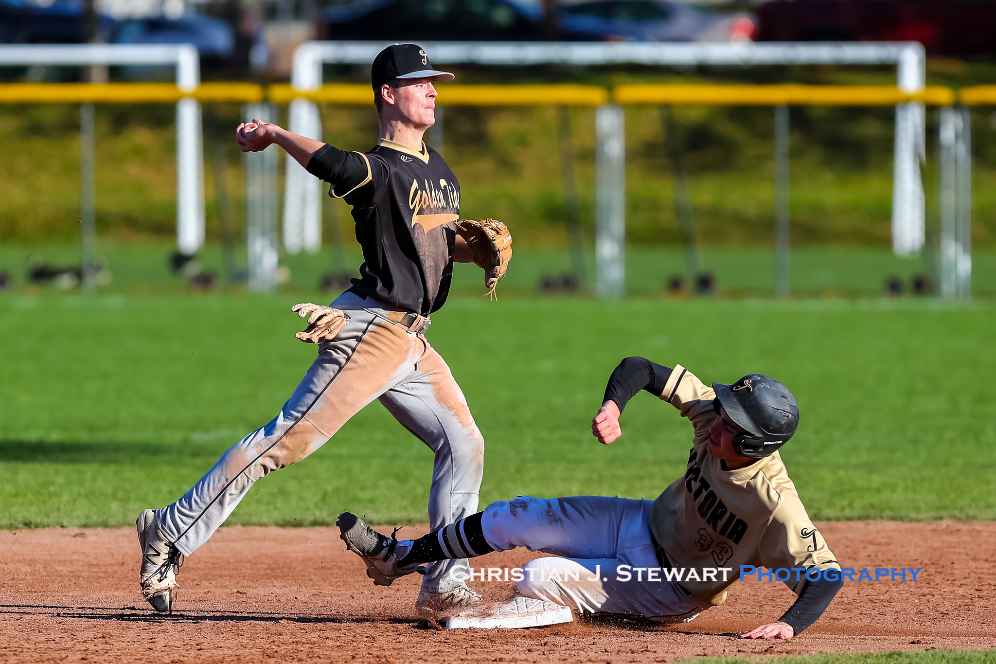 Team Black’s Alex McLauchlan slides safely into second ahead of the throw to Team Gold’s Austin Wall.