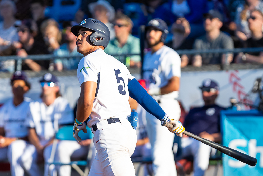 Jesse Brown takes a moment to admire one of his long home runs in 2022 (Photo: Christian J Stewart)