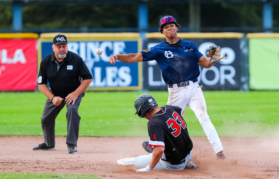Victoria started out strong, scoring in both the bottom of the first and second innings thanks to first a single by Grady Morgan that sent Roberto Gonzalez home. In the second, an errant throw into center field from the Kamloops catcher Kade Huff allowed Hudson Shupe to meander on home and stake the Lower Island residents to a early two run lead.