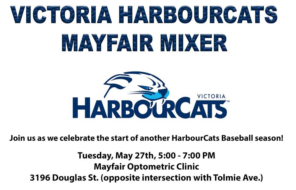 Victoria, BC – The Victoria HarbourCats would like to invite all fans, season ticket holders, host families, partners and sponsors to our annual pre-season mixer, this year hosted by our fine friends at Mayfair Optometric Clinic, on Tuesday, May 27th at 5:00 pm.